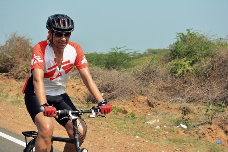 Unni Karunakara, the Worldwide President of Medicins Sans Frontiers, who was just about to finish his 3 year term in September last year and make a 5600 km bicycle tour of India starting on Oct 12 from Kashmir in the north to Kanya Kumari in the south, asked me to join him for the last 850 km leg of his trip.