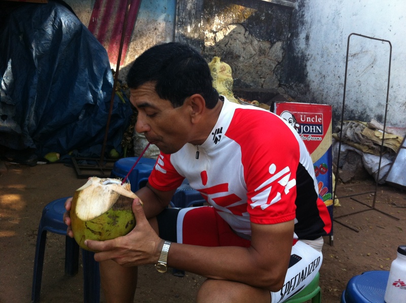 Day 8 – Jan 31 – 124 km – Kanya Kumari to Trivandrum – Day 7 was nothing compared to this final day. It was like riding in the Alps with huge potholes and heavy Indian traffic. I learnt to appreciate the first sip of coconut water in the sun, the shade of a tree when you have not seen one for a couple of hours in the scorching sun or the pleasure of lying on hay in the middle of a side road and nearly falling asleep with exhaustion but then waking up with excitement to see what is around the next turn on this last day.