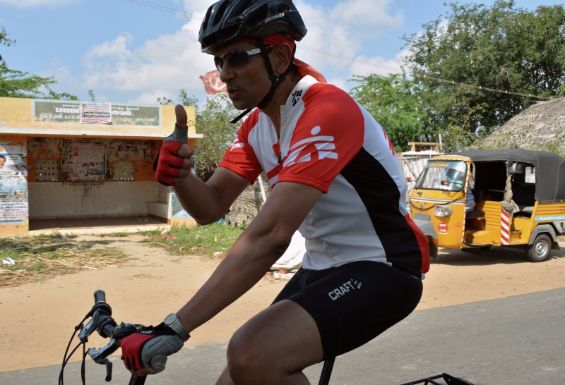 Day 2 – Jan 24 – 81 km – Chidambaram to Karaikal and I had a unique problem – my right tri-ceps were totally immobilized & very painful and I could not hold the handle bars anymore so I was riding with one hand behind my back but that day I experienced and saw the hospitality of people who had practically nothing but were willing to invite us into their house & share whatever little they had without knowing or worrying about where their next meal would come from. I realized that being rich was not about how much we had but about how much we could give – so now to me rich or poor are just a state of the mind. It is in the thinking, not in the things.